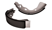 Brake shoes are typically made of two pieces of sheet steel welded together. The friction material is either rivetted to the lining table or attached with adhesive. The crescent-shaped piece is called the Web and contains holes and slots in different shapes for return springs, hold-down hardware, parking brake linkage and self-adjusting components. All the application force of the wheel cylinder is applied through the web to the lining table and brake lining. The edge of the lining table generally has three “V"-shaped notches or tabs on each side called nibs. The nibs rest against the support pads of the backing plate to which the shoes are installed. Each brake assembly has two shoes, a primary and secondary. The primary shoe is located toward the front of the vehicle and has the lining positioned differently than the secondary shoe. Quite often the two shoes are interchangeable, so close inspection for any variation is important.